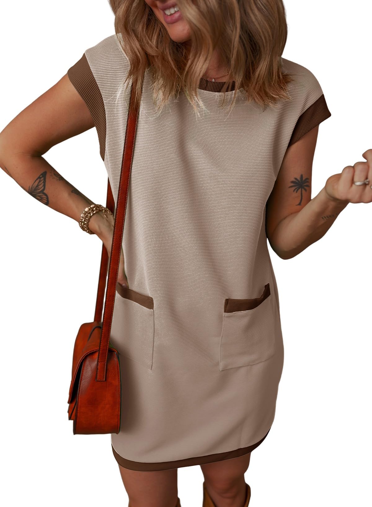 😍LAST DAY SALE 50% OFF💥2025 New Women's Casual Cap Sleeve Color Block Shift Tshirt Dress With Pockets(buy 2 free shipping)