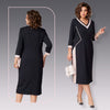 Package Includes: 1 * 3/4 Sleeve V-Neck Color Block Dress