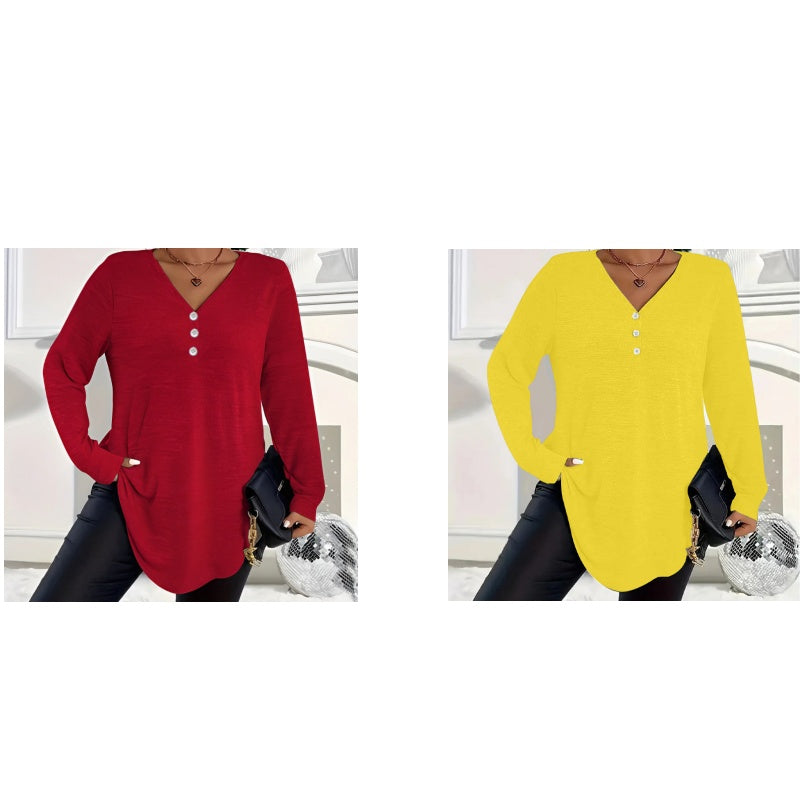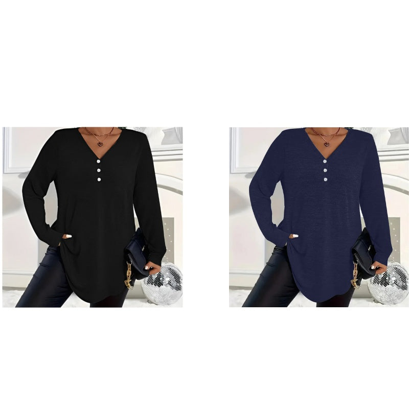 🍂Featuring a flattering V-neckline with chic button details, this top effortlessly blends sophistication with an edge. Its long sleeves provide versatile coverage, perfect for layering or standing out solo. Crafted to make a statement, it’s your go-to piece for bold looks that command attention and confidence.