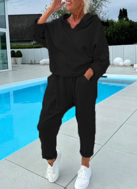 Women's Two-Piece Solid Color Hooded Sweatshirt Set