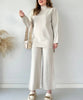 Featuring a crewneck knit crop top and high waist loose knit pants for a trendy and chic look, made with a super-soft knit fabric, our Classy Elastic Knit Lounge Set is the perfect choice for a cozy instant outfit.