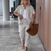 Cotton-Linen Short Sleeve Shirt & Loose Pants Set
