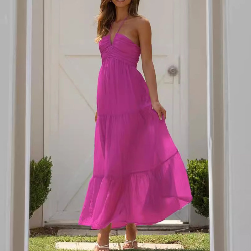 FLATTERING DEEP V-NECKLINE – Designed to accentuate your natural curves, this elegant neckline creates a feminine and alluring silhouette. The halter neck design provides adjustable support while adding a touch of sophistication for evening events or special occasions.