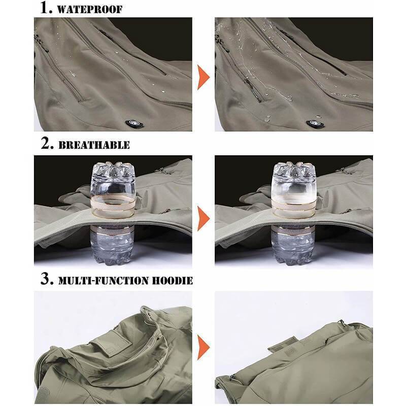 The Military Tactical Jacket composed of breathable moisture wicking fabric and features a waterproof polyester shell, it is durable, waterproof, lightweight, breathable. -