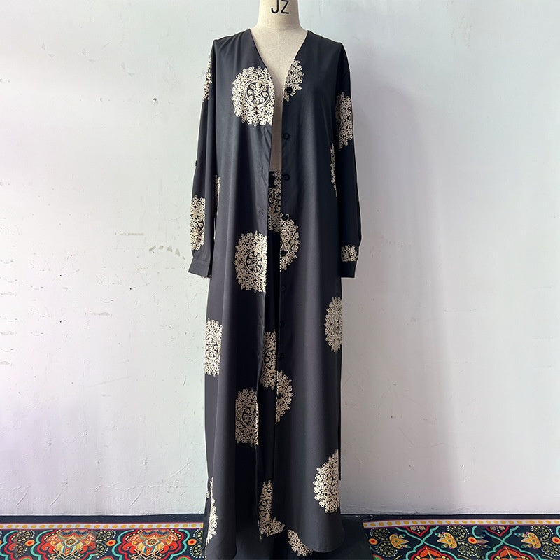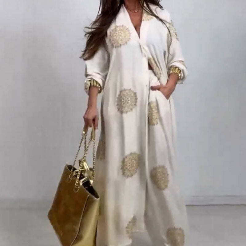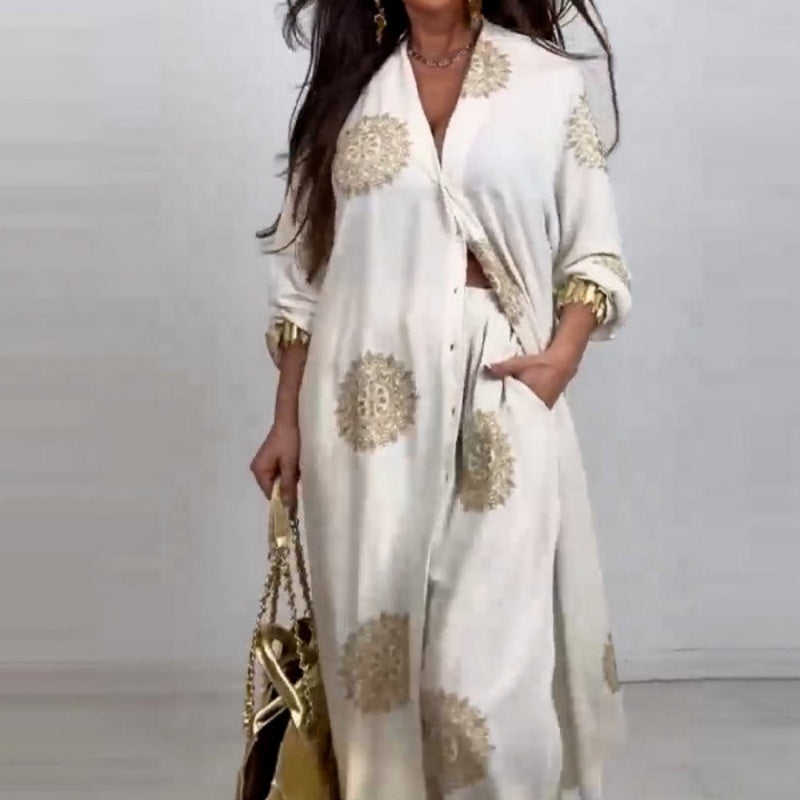 CHIC AND COMFORTABLE DESIGN: Featuring a loose-fitting v-neck long top paired with stylish printed wide-leg pants, this two-piece set combines comfort and style for any occasion.