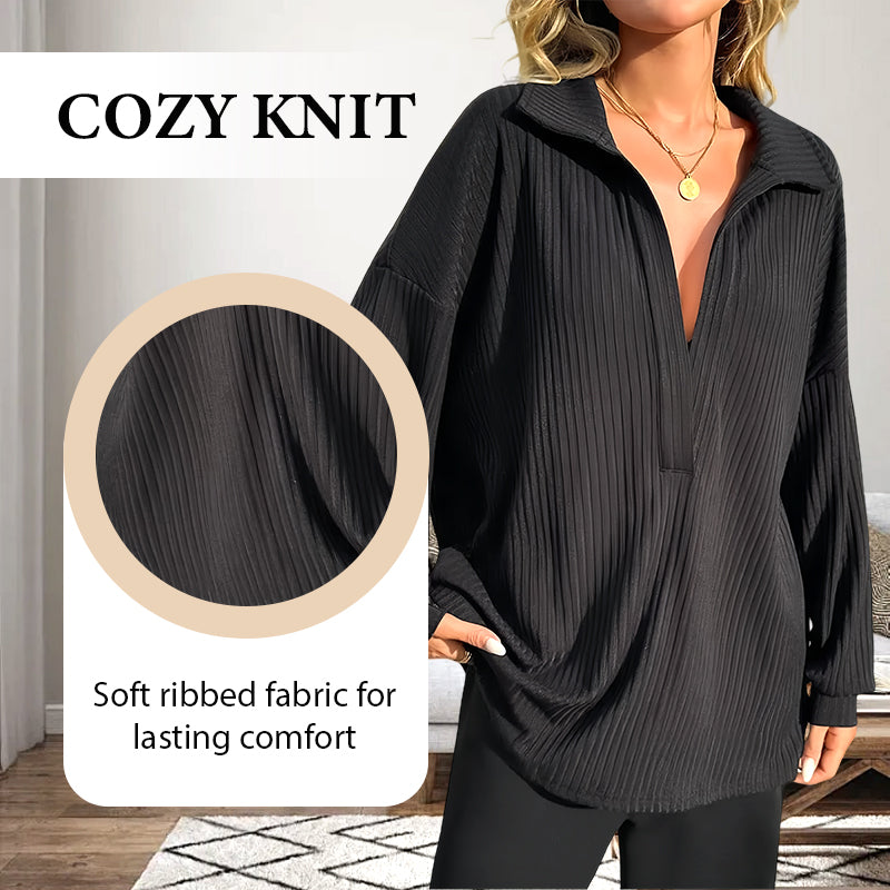 EXPERIENCE LASTING COMFORT – Crafted with ribbed knit fabric, this top is both soft and durable, providing a breathable yet cozy wear throughout the day. The texture allows for stretch and flexibility, adapting to your movement without losing its shape.