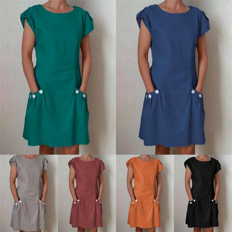 Loose round neck dresses. Basic short-sleeved, solid color, plain, trendy and elegant.