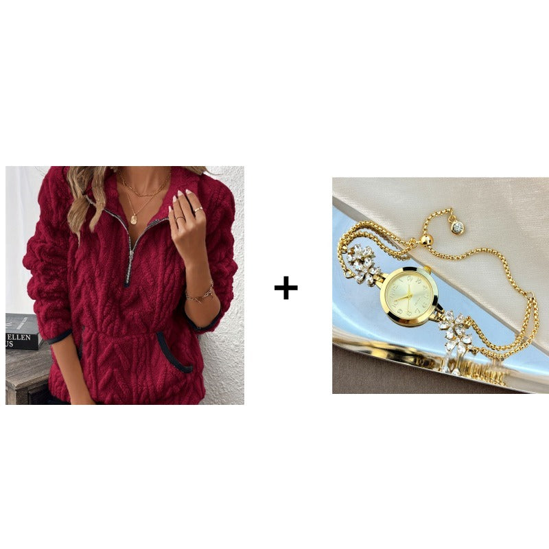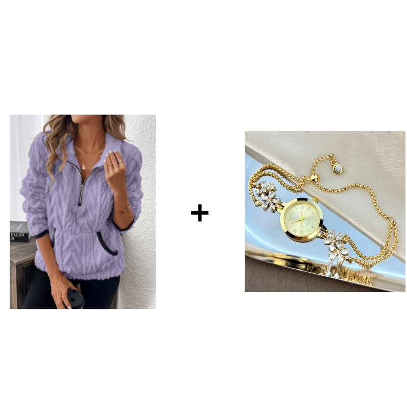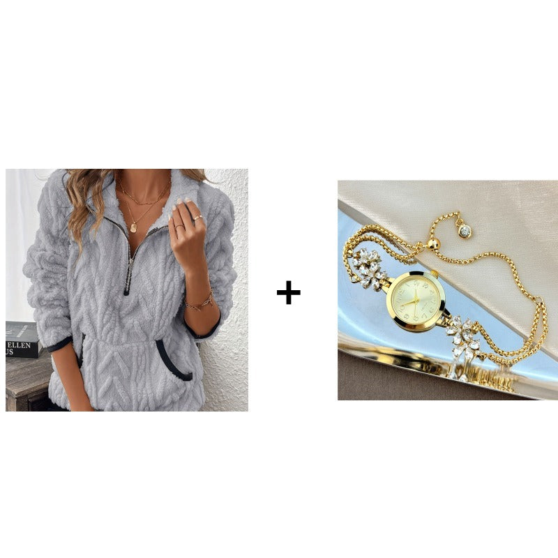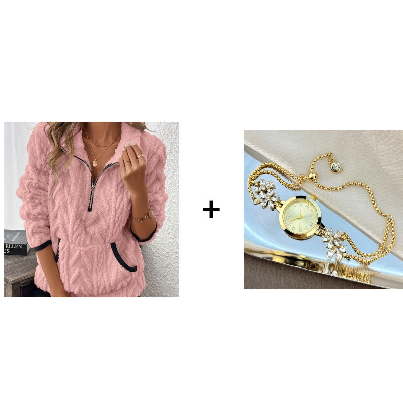 Half-Zip Fuzzy Sweatshirt 🍂 | Cloud-Soft + Roomy Pockets – Comfy Daily/Lounge