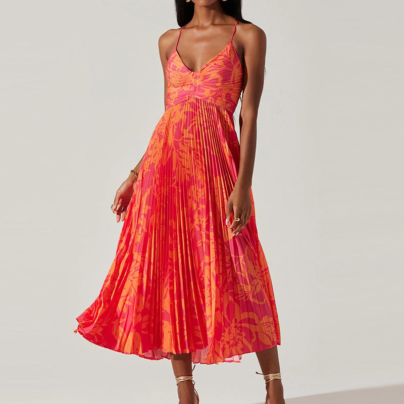 Women's Fashion V-Neck Sleeveless Printed Dresses