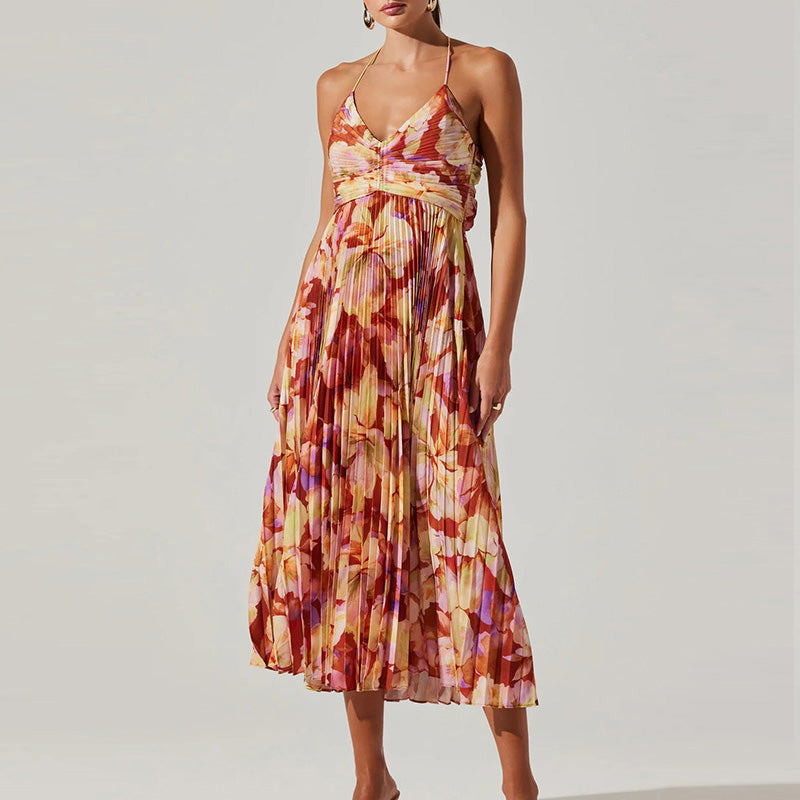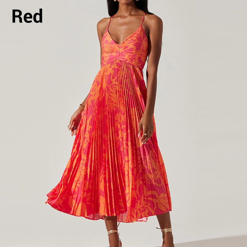 Package Included: 1*Women's Fashion V-Neck Sleeveless Printed Dresses