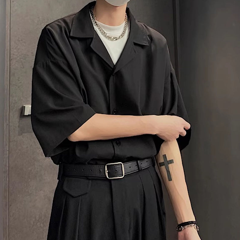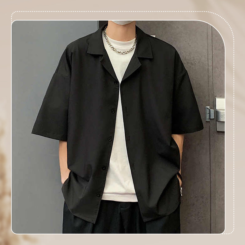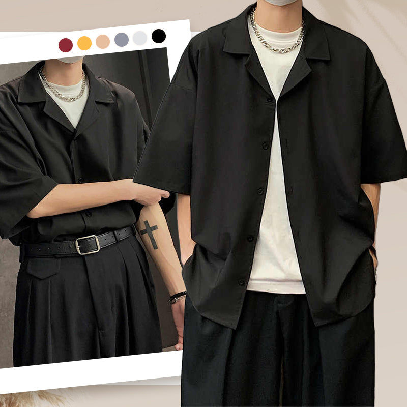 Men's Solid Color Loose Lapel Shirt