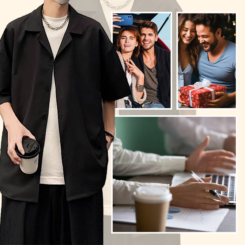 Package Included: 1*Men's Solid Color Loose Lapel Shirt