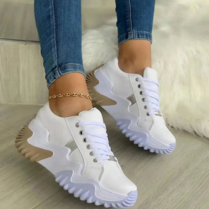 THICK AND SUPPORTIVE SOLE: Designed with a thick sole for excellent cushioning and support, these trainers ensure all-day comfort with subtle added height, making them the perfect combination of style and practicality.